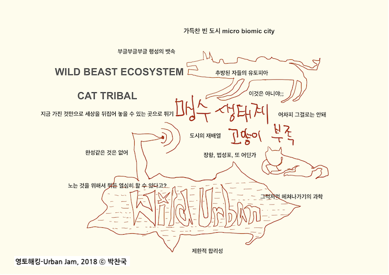 아티스트들이 완전한 답을 주지 않더라도 인사이트나 영향력을 줄 수는 있죠. 녹색 평론에 소개된 마리아 미즈의 글을 보면, ‘자급 경제’가 아니라 ‘자급의 관점’이라는 말을 쓰더라고요. 소농이나 가사 노동에서는 교환 불가능한 방식의 생존을 위한 행위들이 있어요. 그런 것들이 교환 불가능한 것으로 인식되어 왔는데, 단순히 경제적 관점 만이 아니라 이제는 문화, 교육, 사회 등 모든 면에 있어서 새로운 방식으로 생산력을 만들어내는 관점으로 다시 봐야 한다는 것이에요. 제가 지금 수원에서 하는 것이 이 관점과 동일해요. 도시 안에서 사람들이 말하는 피난처를 재정의하는 방식이죠.